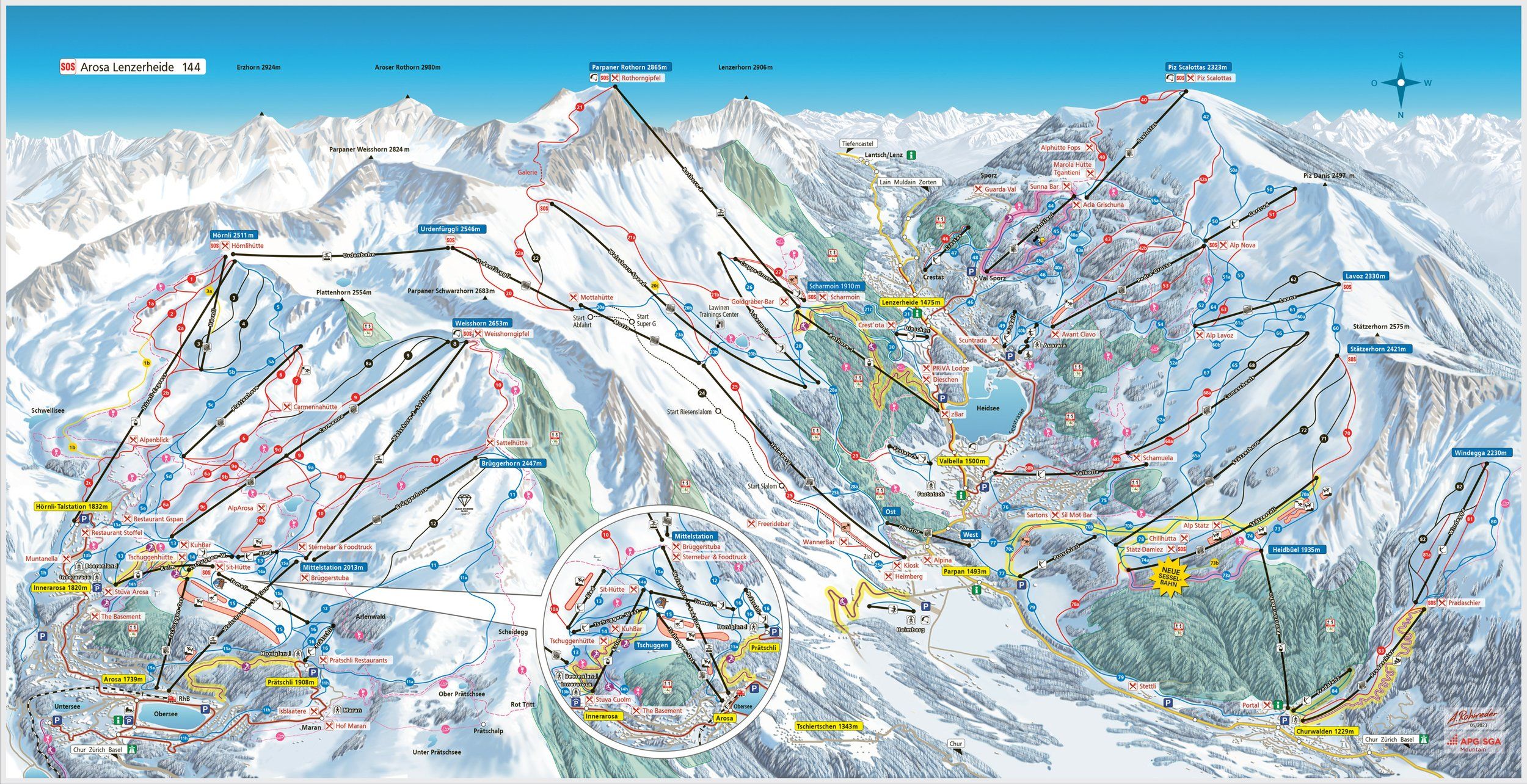 Arosa to słynny kurort i ośrodek sportów zimowych położony w dolinie Schanfigger na wysokości 1775 m, który jednoczy nowoczesność z naturą. Miejscowość otoczona jest wspaniałym krajobrazem górskim i zalesionymi stokami. Głównymi szczytami do uprawiania narciarskiego szaleństwa są: "Hörnli", "Weißhorn" i "Brüggerhorn". Dla każdego poziomu zaawansowania znajdzie się tu coś odpowiedniego. Centrum miejscowości zaprasza z licznymi sklepami, restauracjami - od prostych po gwiazdkowe - barami, salonami i klubami na spacer po zabawie na stoku.Dolina Schanfigg